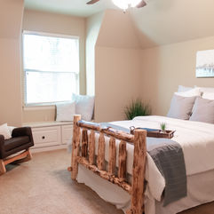 We loved working on this staging project, as we really got to stretch our creativity. We brought in almost complete furnishings for the dining, primary, and living rooms. In every other area of the home, we worked with pieces the homeowner had, created new room layouts, and added new bedding, art, and accent furniture. This property received multiple offers over list price and was under contract in only 5 days.